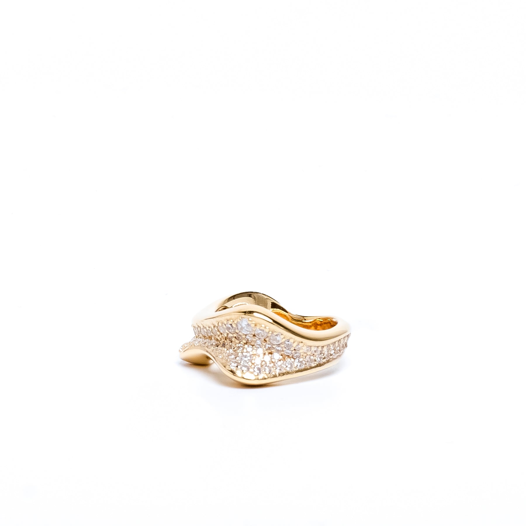 Calm Seas Diamond Ring is made in 14k yellow gold. The ring is set with white diamonds, total of ~1.10 cts.