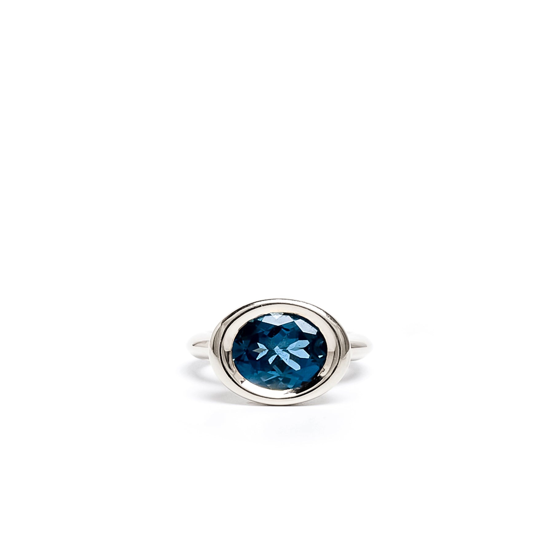 Blue Topaz Oval Bud Ring is made in sterling silver. The ring is set with a london blue topaz.