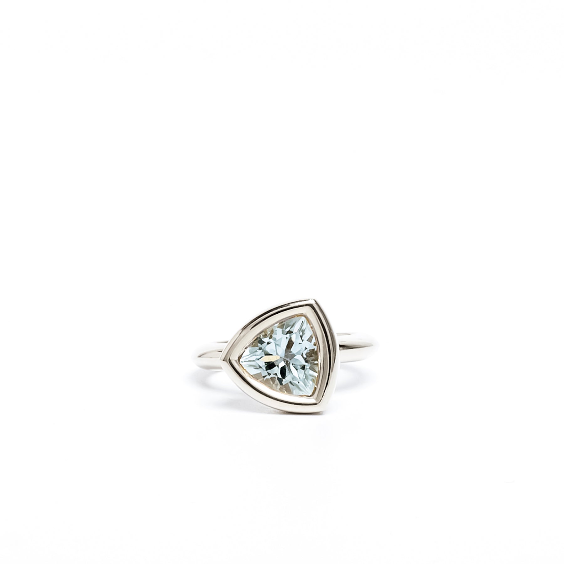 Green Quartz Trillion Bud Ring is made in sterling silver. The ring is set with a 9 mm trillion cut green quartz.
