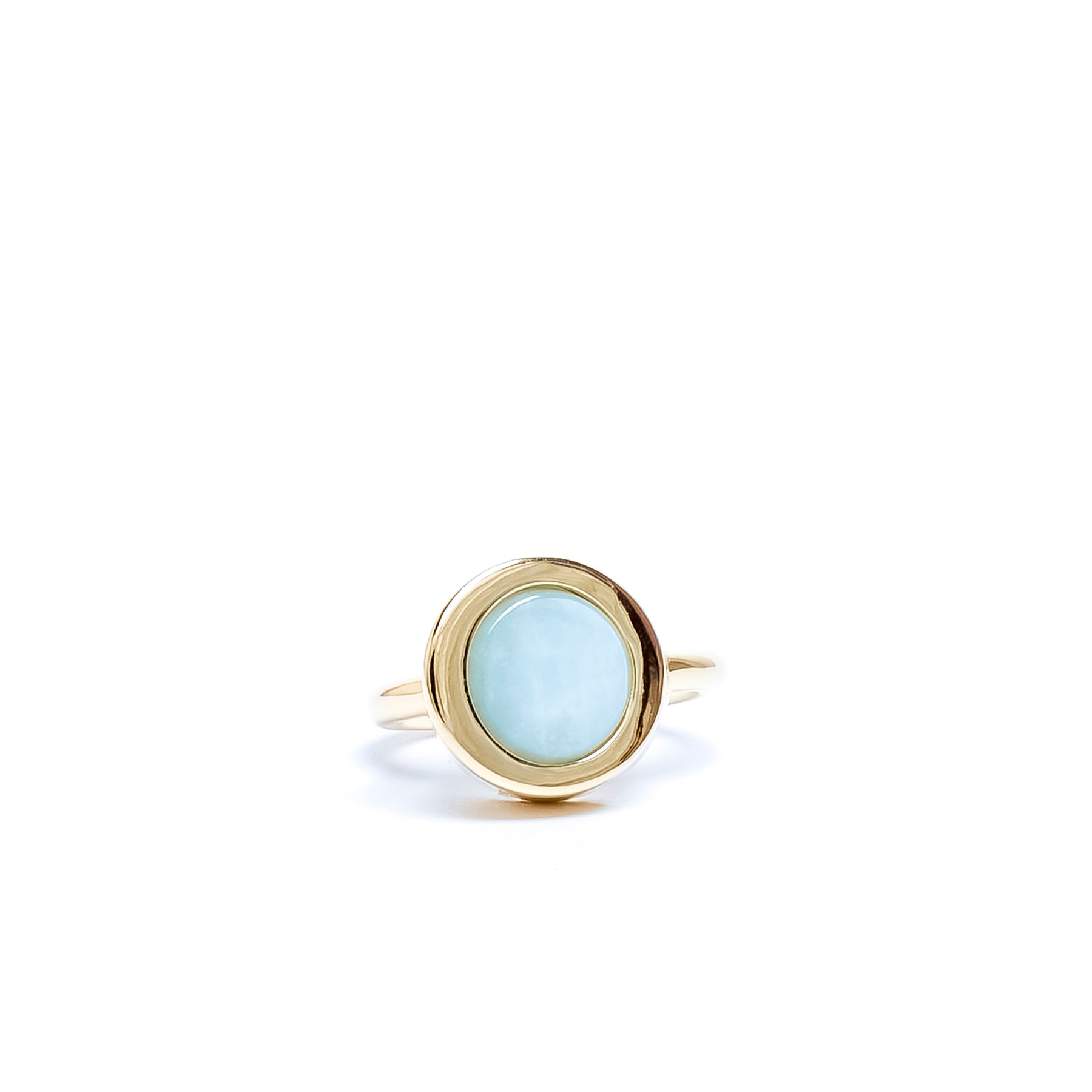 Compass Aquamarine Ring is made in 14k yellow gold and set with a 10 mm aquamarine bead.