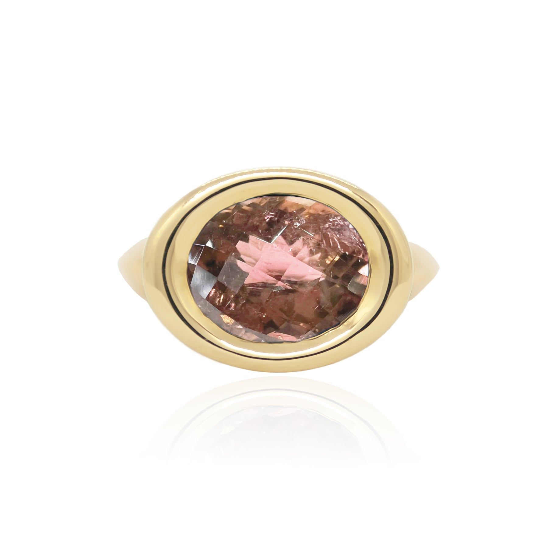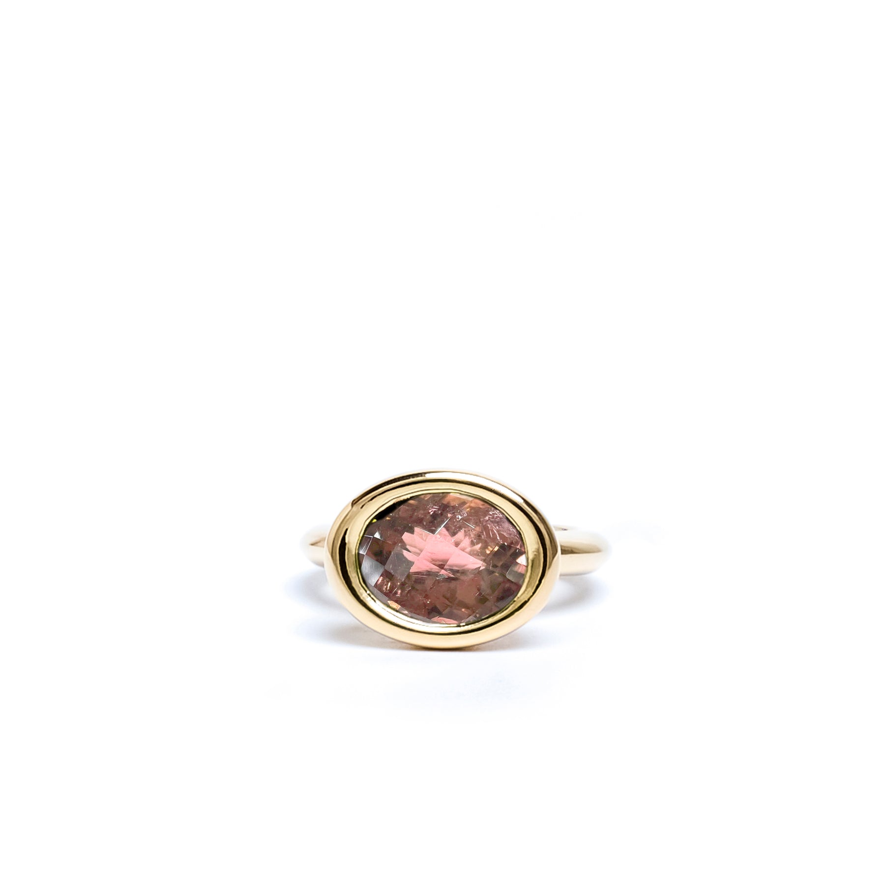 Tourmaline Oval Bud Ring is made in 14k yellow gold. The ring is set with a pale brownish pink tourmaline.