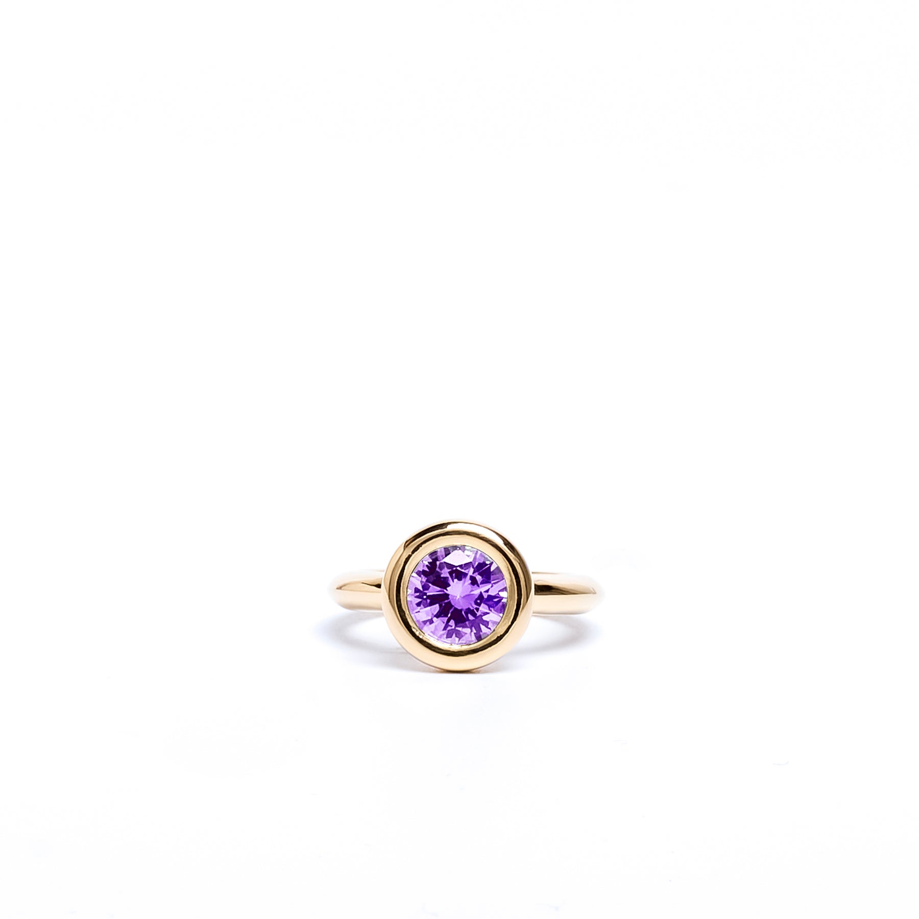 Amethyst Small Bud Ring is made in 14k yellow gold. The ring is set with a purple amethyst.