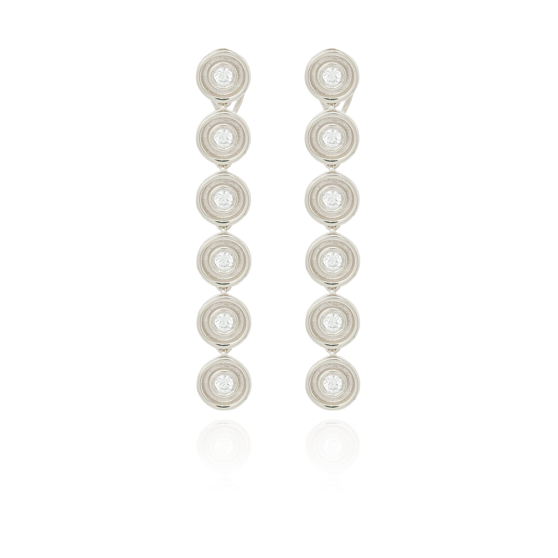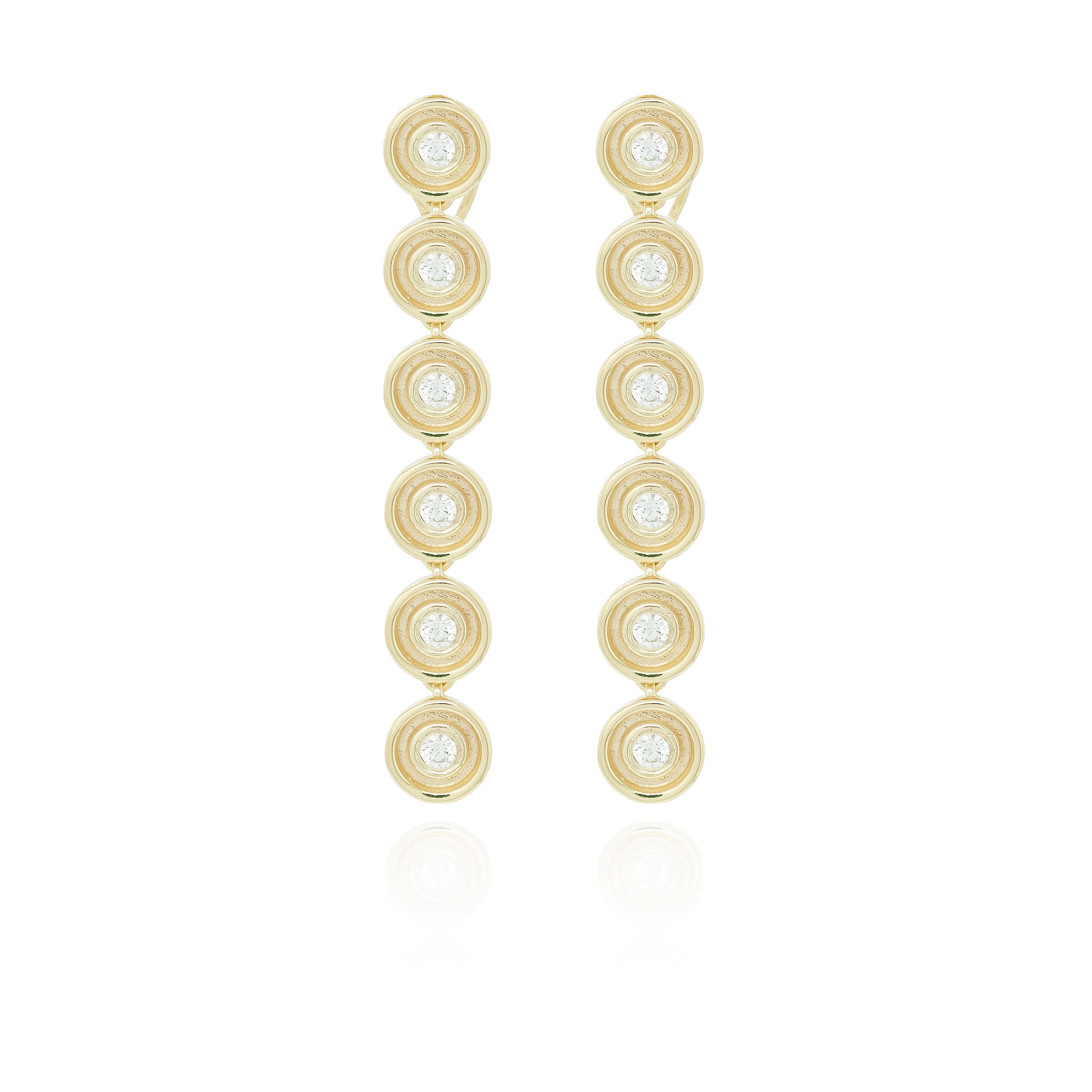 Diamond Flora Pendant Earrings are made in either 14k yellow gold or 14k white gold. The earrings are set with a 3 mm diamonds.