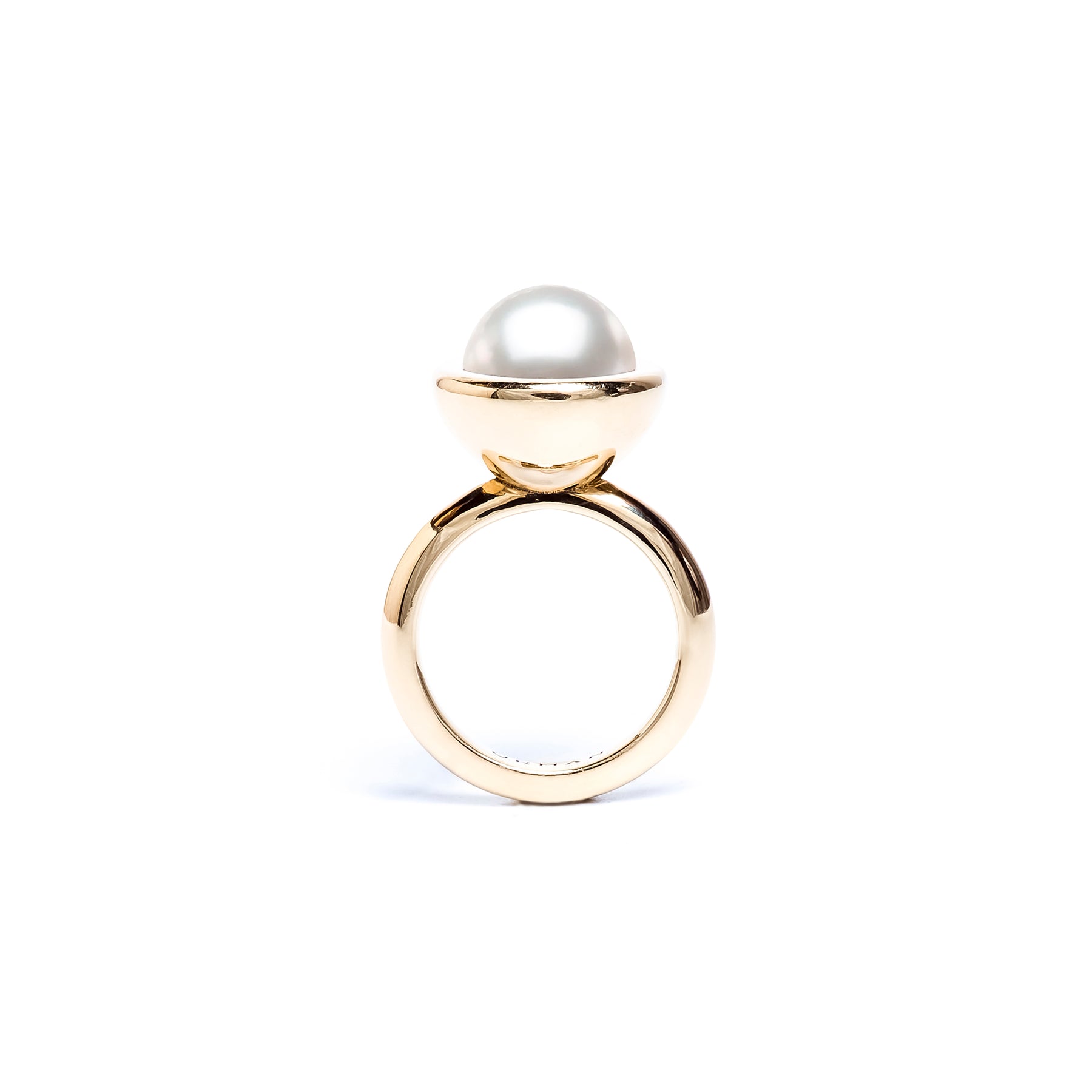 Pearl Large Bud Ring is made in 14k yellow gold. The ring is set with a 10-11 mm fresh water pearl.
