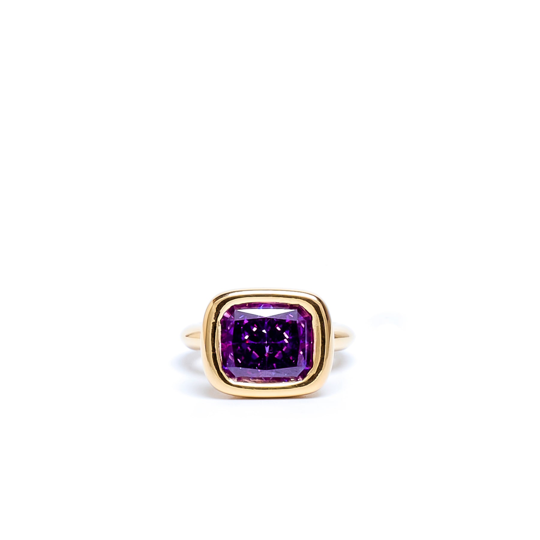 Amethyst Square Bud Ring is made in 14k yellow gold. The ring is set with an amethyst.