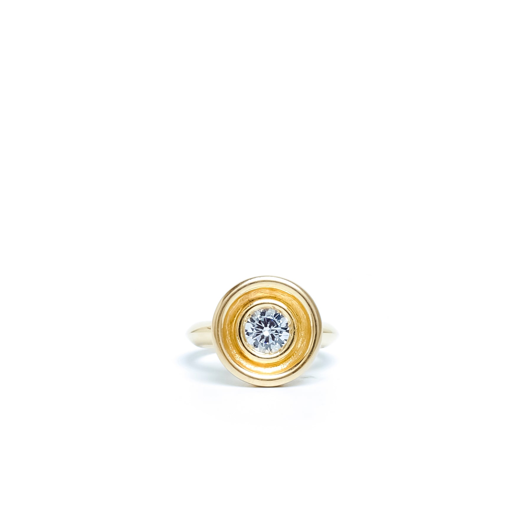 Diamond Flora Ring is made in 14k yellow gold. The ring is set with a diamond.