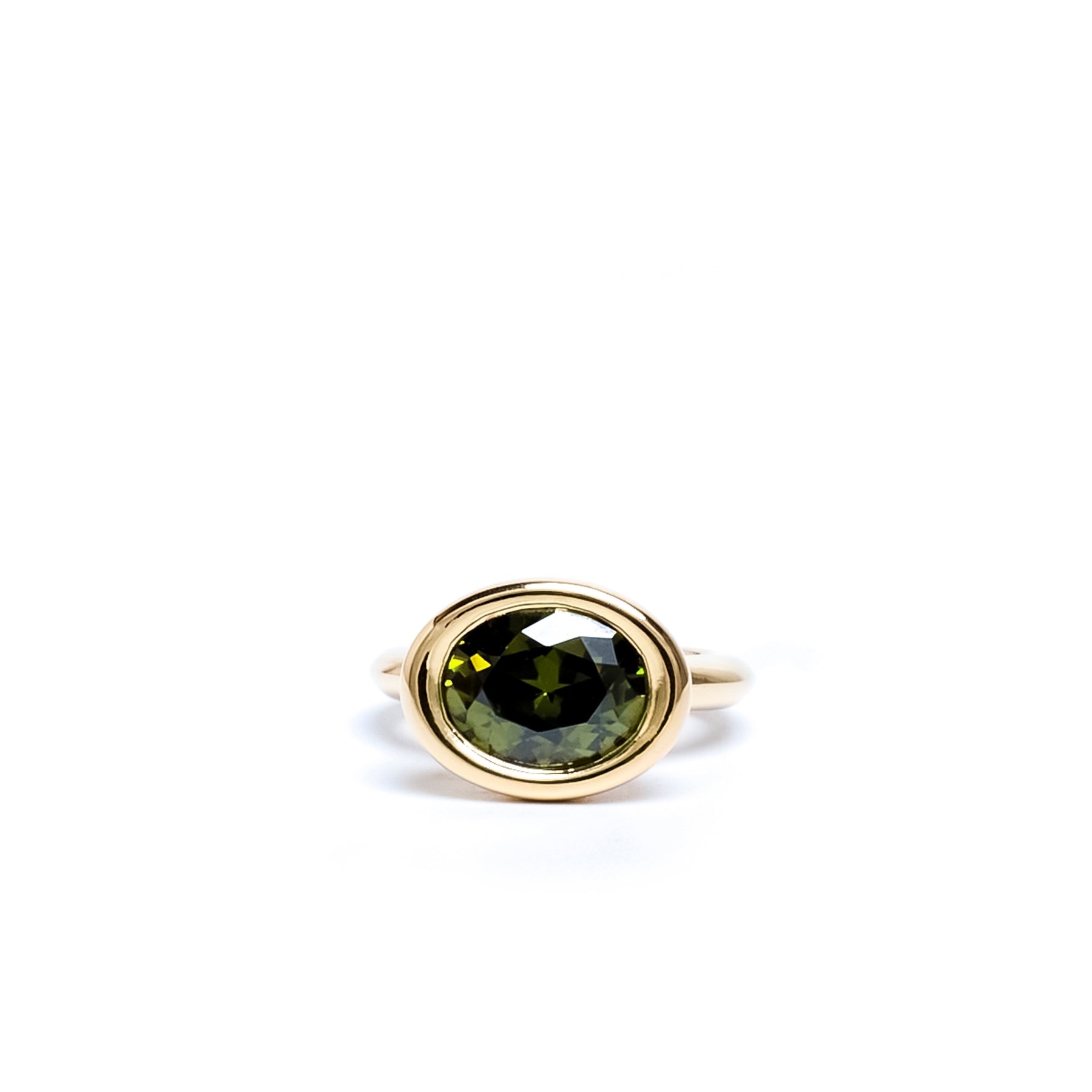 Tourmaline Oval Bud Ring is made in 14k yellow gold. The ring is set with a green tourmaline.