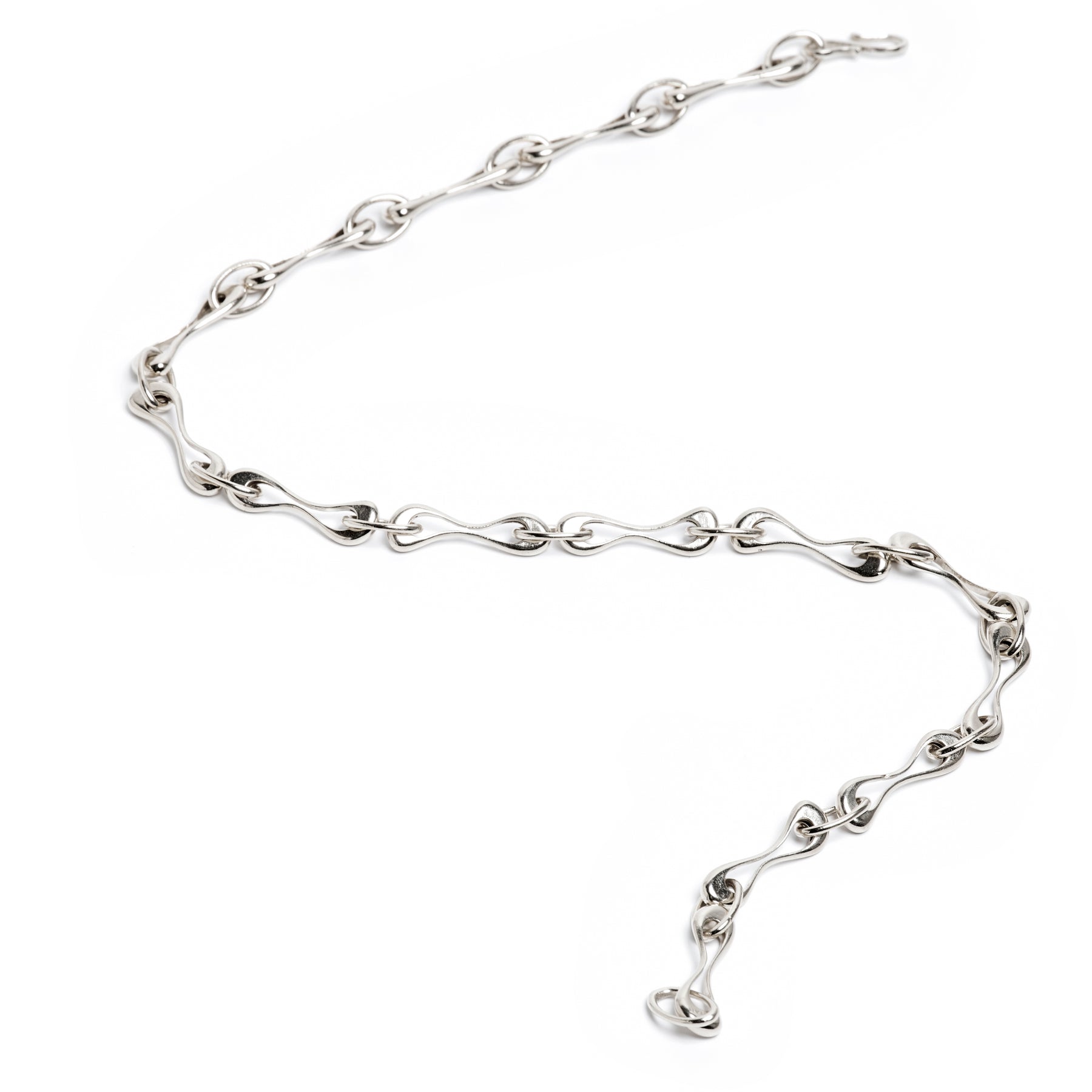 Sail Link Chain Necklace is made in silver. The clasp is a custom ORMAN design which makes the design versatile as it can be connected to other chains and necklace.